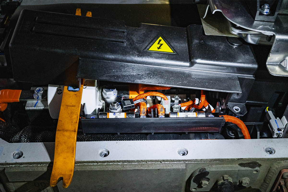 Для доступа к цепям нагревателя в нашем случае требуется демонтаж высоковольтной тяговой батареи. Согласовываем с клиентом перечень работ и переходим к выполнению.