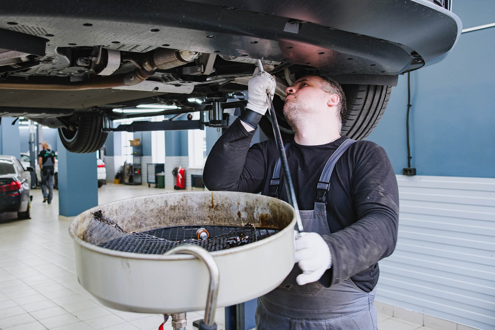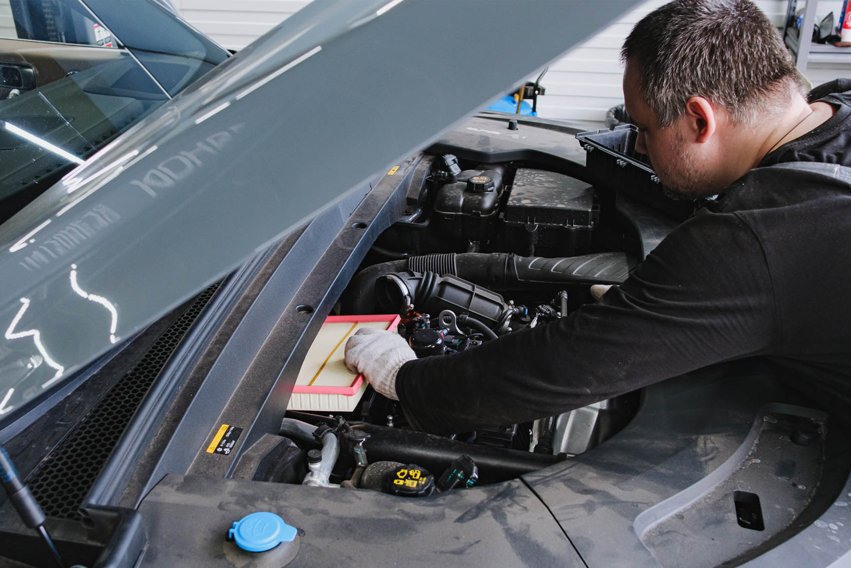 Как обычно, перед началом работ по замене расходных элементов и жидкостей мы выполняем диагностику, которая поможет вовремя выявить скрытые неисправности. Затем уже приступаем к стандартным процедурам – сливаем отработанное масло из двигателя и осуществляем замену масляного фильтра на новый.