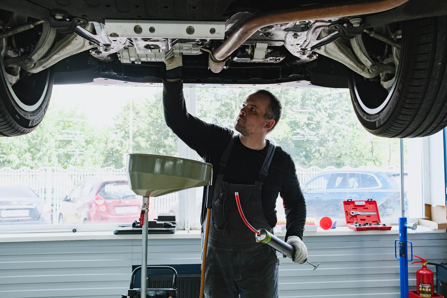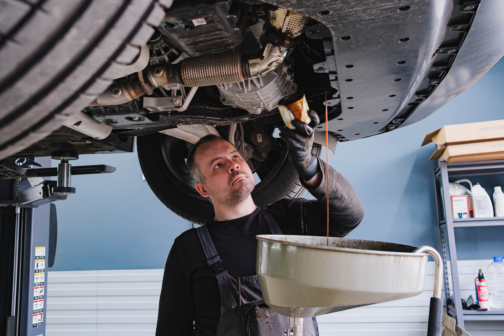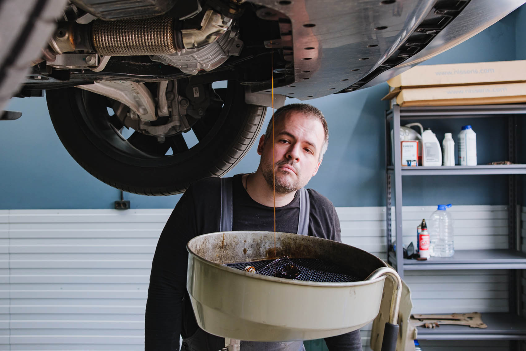 Выполнив замену масла в электромоторах, опускаем Лисян для дальнейших процедур. Заливаем в ДВС новое масло с вязкостью SAE 0W-30, в соответствии с заводским регламентом.