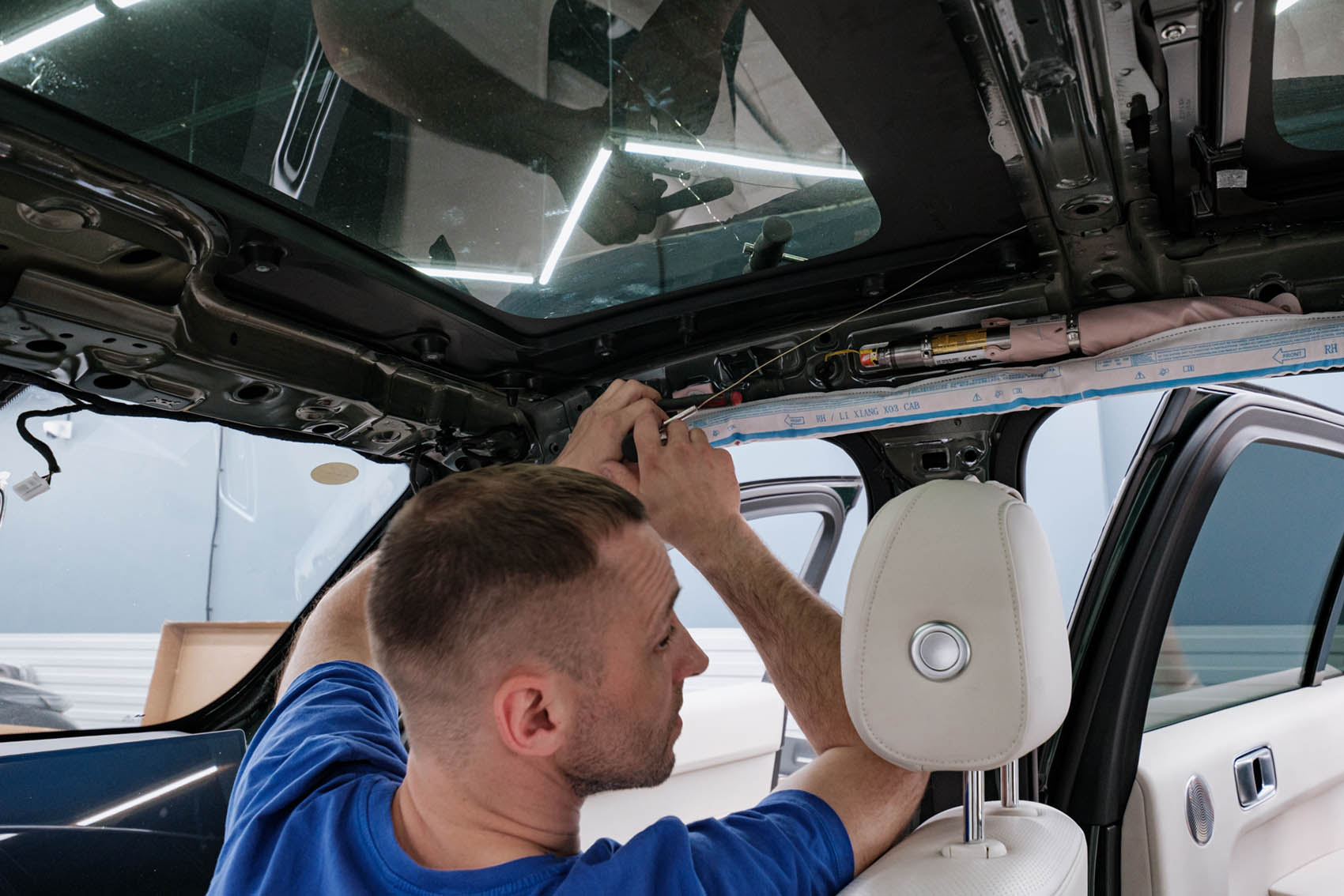 Практика показывает, что повреждения панорамных стекол у автомобилей Лисян встречаются несколько реже, чем повреждения лобового стекла, однако клиенты периодически обращаются к нам для выполнения их замены. Основной причиной образования сколов и трещин на стекле является попадание камней при движении автомобиля. При этом у Lixiang L7 из-за конструктивных особенностей трещины могут образовываться на стыке передней панорамы и лобового стекла. Во избежание ранних проблем со стеклами мы рекомендуем нашим клиентам выполнять бронирование панорамной крыши Lixiang пленкой. Эта услуга также предоставляется в нашем сервисном центре.